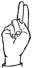 На ћирилици написано РУМЕНА САМАРЏИЋ састоји се из 14 слова [?]. Исписано ћириличном једноручном азбуком за глувонеме: